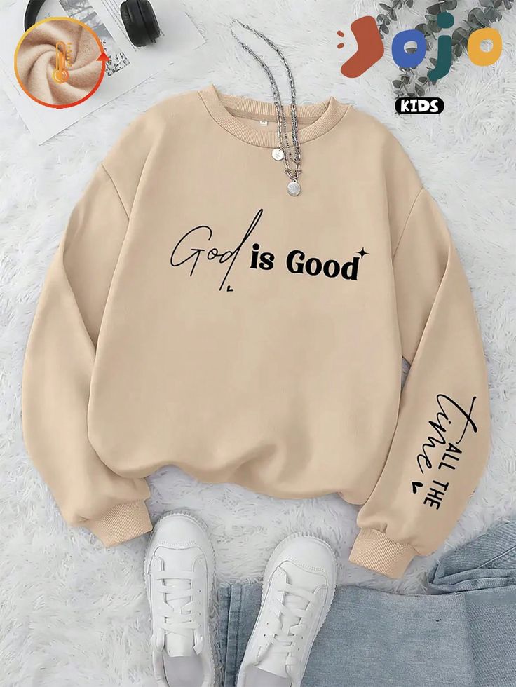 هودي نسائي أنيق باللون البيج بطباعة God Is Good بتصميم هادئ وعصري يناسب جميع الإطلالات اليومية.