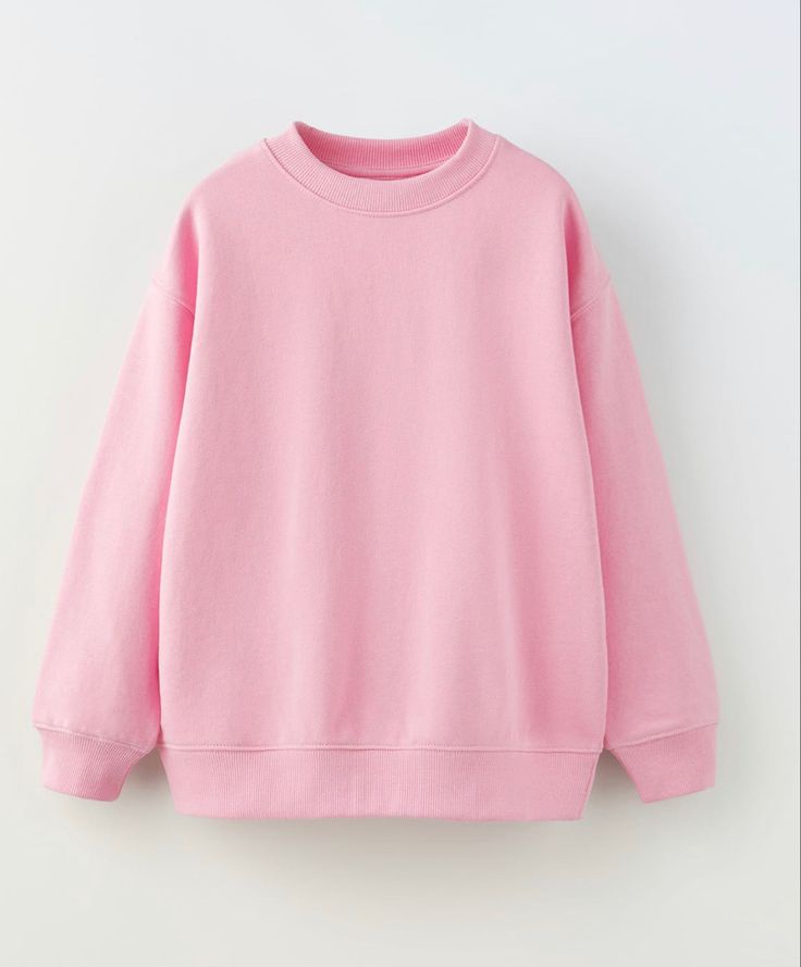 سويتشيرت نسائي وردي سادة بتصميم بسيط، خامة ناعمة ومريحة، مثالي لإطلالة كاجوال يومية.