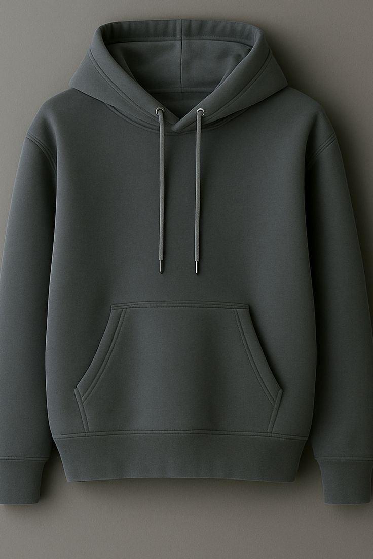 هودي رجالي بلون أخضر رمادي داكن بتصميم مينيمال وخامة مريحة للاستخدام اليومي.