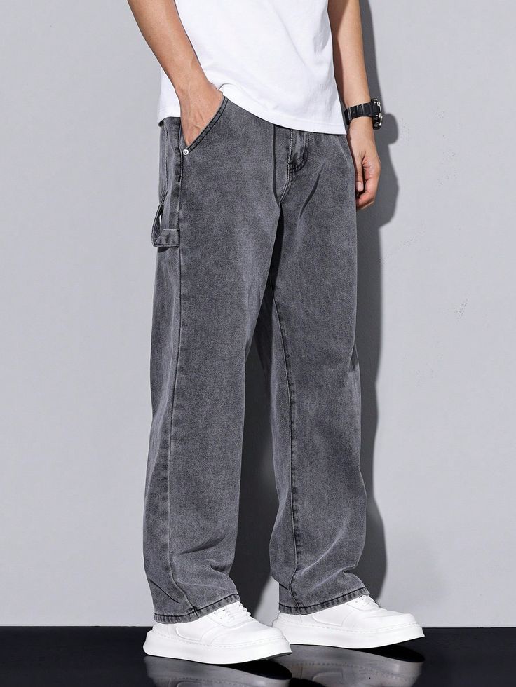 جينز رمادي بقصة مريحة، ستايل ستريت عصري يناسب الإطلالات اليومية.