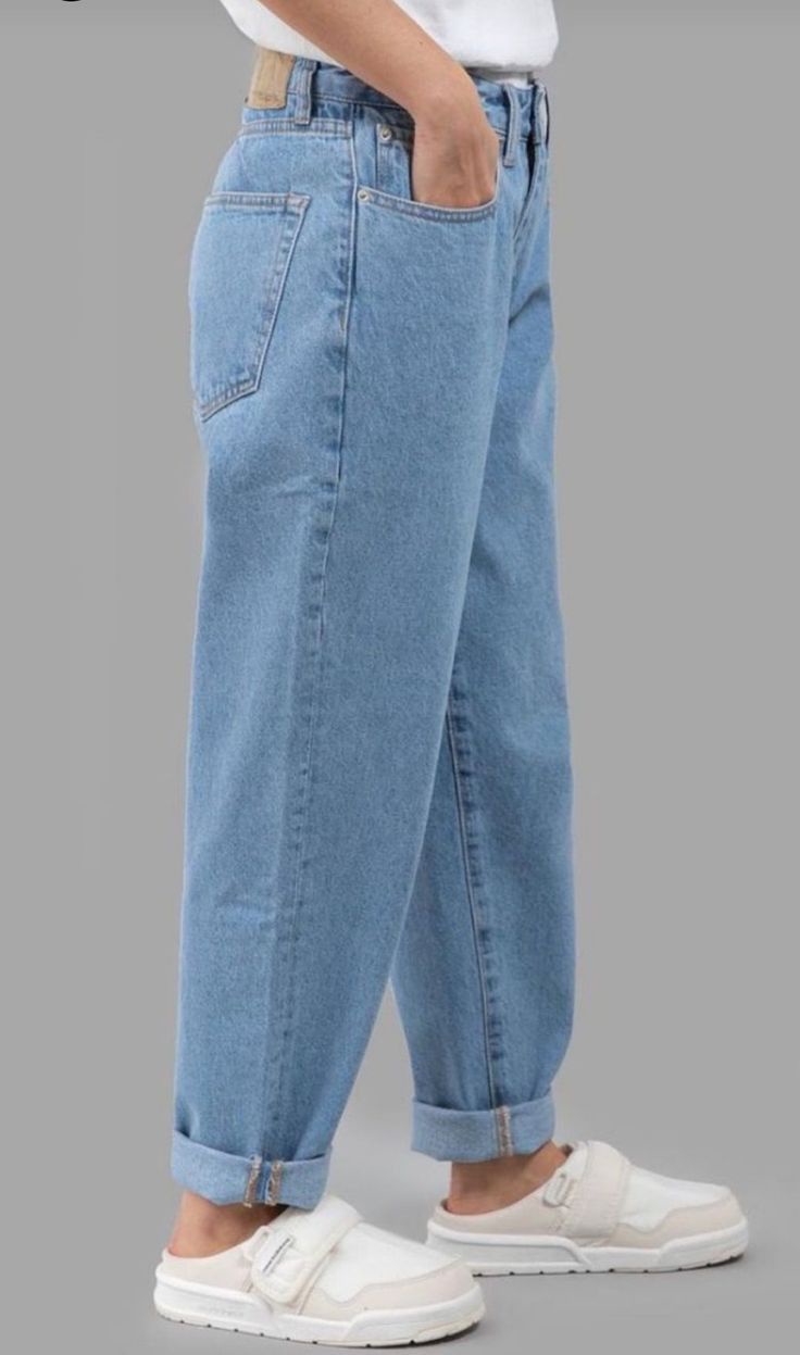 بنطلون جينز أزرق فاتح بقصة مستقيمة من LORÉ، تصميم بسيط وعصري، مناسب للستايل الكاجوال اليومي وسهل التنسيق مع مختلف الملابس.